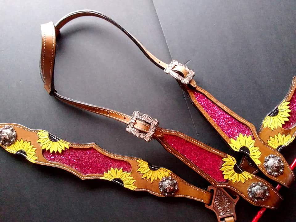 This headstall is available for custom orders. Headstall is $200 full bling. Tie ends only. Argentina leather.